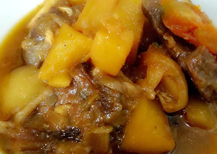 4. Tambahkan air secukupnya, masak sampai kentang empuk . Angkat dan sajikan .